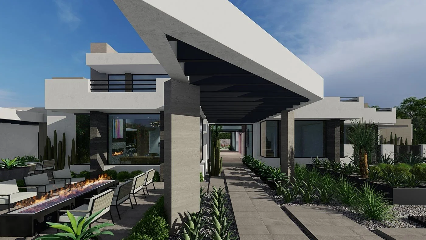 Architect James Hann, AIA, designed a striking contemporary-style home in Paradise Valley, seamlessly blending modern aesthetics with the natural beauty of the Arizona landscape. The residence features an open floor plan that enhances spatial flow and connectivity, creating a sense of harmony between indoor and outdoor living. At the heart of the design is an upper-level lounge that offers a breathtaking panoramic view of Camelback Mountain, serving as both a visual focal point and a tranquil retreat. The project’s clean lines, natural materials, and thoughtful integration with the surrounding environment exemplify Hann’s design philosophy. The immersive video and photorealistic renderings capturing the home’s elegance and setting were masterfully produced by Dennis Falls of Hyperline Design.